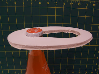 For our second model, we came up with a design that was much simpler than the first one. It was just one oval-shaped piece with an elongated hole in the middle. The hole would vary in size from right to left. The larger part of the hole was the gate in which the cap part of the bottle could come through and slide into the smaller part of the hole, so that only the cap would be above the oval-shaped piece. Giving a force from down to up on one end of the piece would pop up the bottle cap. We also made a model using the foam core. However, we were uncertain whether or not it would work because the Delrin was too thick to go stick below the cap. Also, we were unsure about its strength in that it might break in opening the bottle.* * * * *